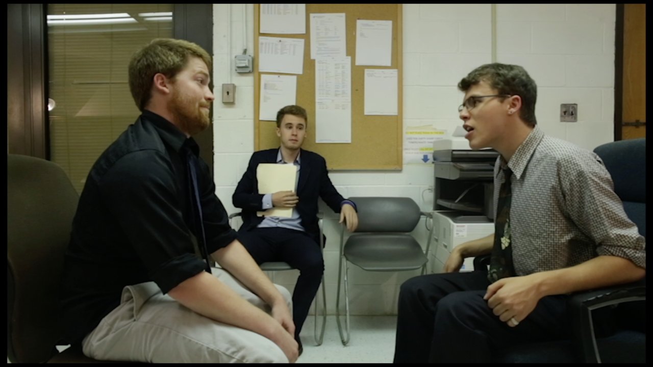 A young man goes for a job interview and meets some of his potential new colleagues...